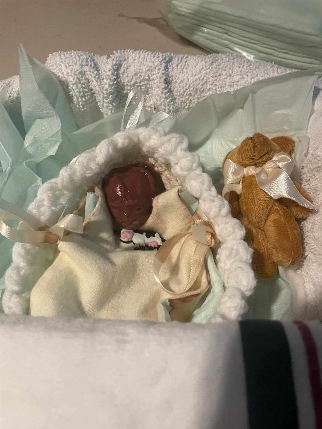 At the age of 37 I had been debating on having a hysterectomy August 21st 2024 I found out I was pregnant for the first time. I spent years trying I even took fertility medication and nothing. I have endometriosis and since I was 15 I have dealt with cysts. I was content with all my fur babies getting pregnant late in life wasn’t something I wanted to do and I had convinced myself I was okay with not having babies so once I was pregnant it was hard to get on board with at first. I went to the ER on September the 3rd 2024 to make sure I wasn’t having a epitopic pregnancy because I was scared to wait till my first appointment. The ultrasound picture is the ER visit there was a heartbeat 💓 and my numbers was growing everything was fine. That’s when I was coming around to having a baby finally! Then my first appointment September the 20th 2024 I found out there was no heartbeat. That destroyed me!! Here I was broken and trying to understand why this happened after all these years and dealing with the fact that I no longer will have my baby in my arms. Dr has no idea what happened we are left with the unknown and the heartbreak. Never got to know the gender. I had 4 names picked out for a boy same amount for a girl. My due date was April of 2025. Dr said I had a Missed Misscarriage because my body wasn’t recognizing the miscarriage. I carried till September the 25th 2024. I went into labor at home and went back a week later to make sure I passed everything on my own.