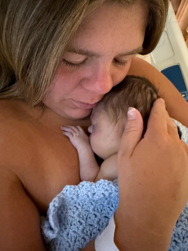 Everything continued to look good for a while, but at 32 weeks, he didn’t pass his tests, and they decided to admit me for monitoring. The next day, his heart rate dropped suddenly, and I was rushed in for an emergency C-section. Our precious Walker James was born on July 1, 2025, weighing 5 lb 6 oz.